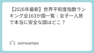 世界平和度指数をもとに、全163か国のランキングを一覧でまとめました。順位・地域・スコア・順位変動から、世界の平和度をわかりやすく整理しています。世界トップ10や地域別の傾向も解説するので、女性一人旅におすすめの国を知りたい人はぜひご覧ください!