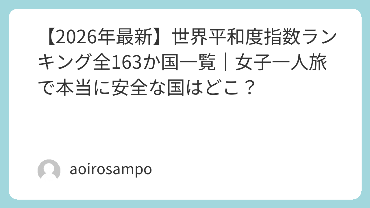- 2026年の旅支度に役立てる『世界の平和度』|最新ランキングを賢く使うコツ