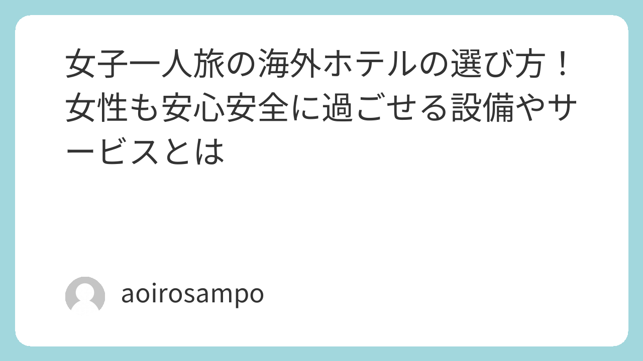 ここでは、女性が海外一人旅のホテル選びで気になりやすい疑問をまとめました。